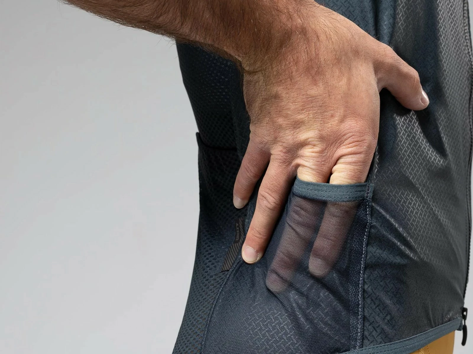 - Poche latérale en filet pour plier le gilet. Permet également de ranger les produits nutritionnels lors des déplacements.