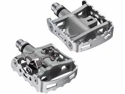 Une face Shimano-SPD aluminium idéale pour commencer en chausse automatique car la tension de serrage est ajustable et l’autre face ne nécessite pas de chaussures avec cales.
